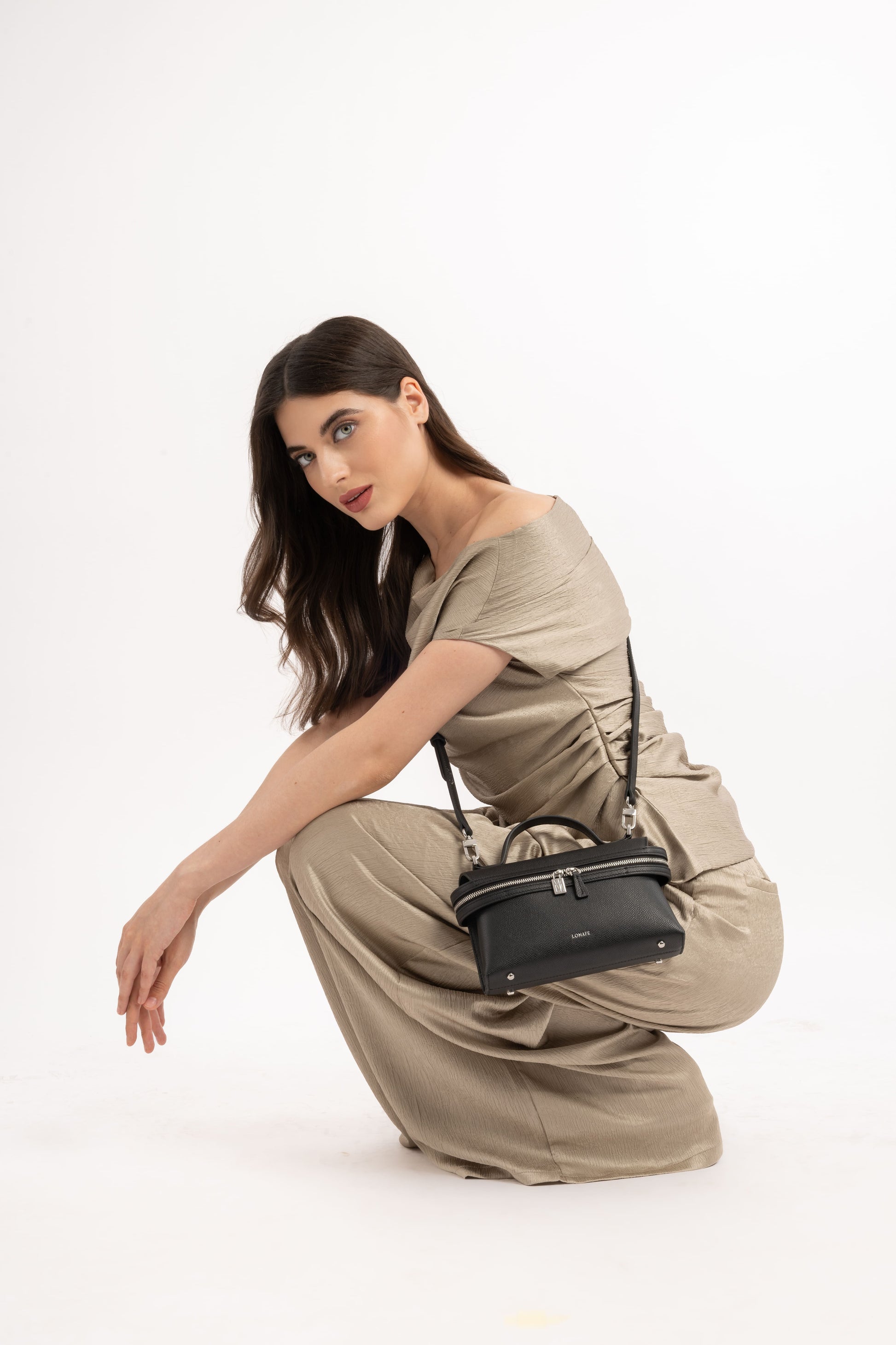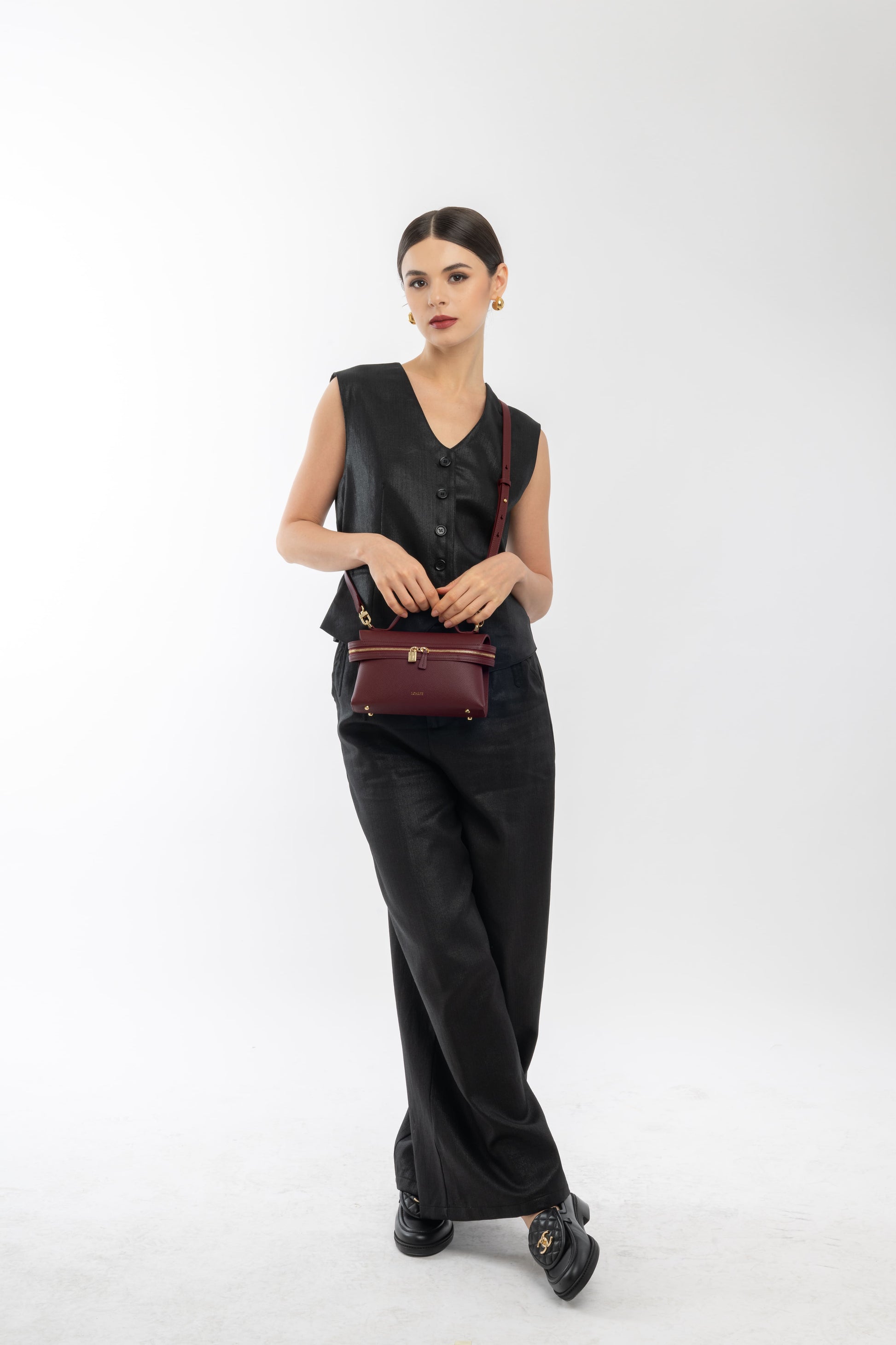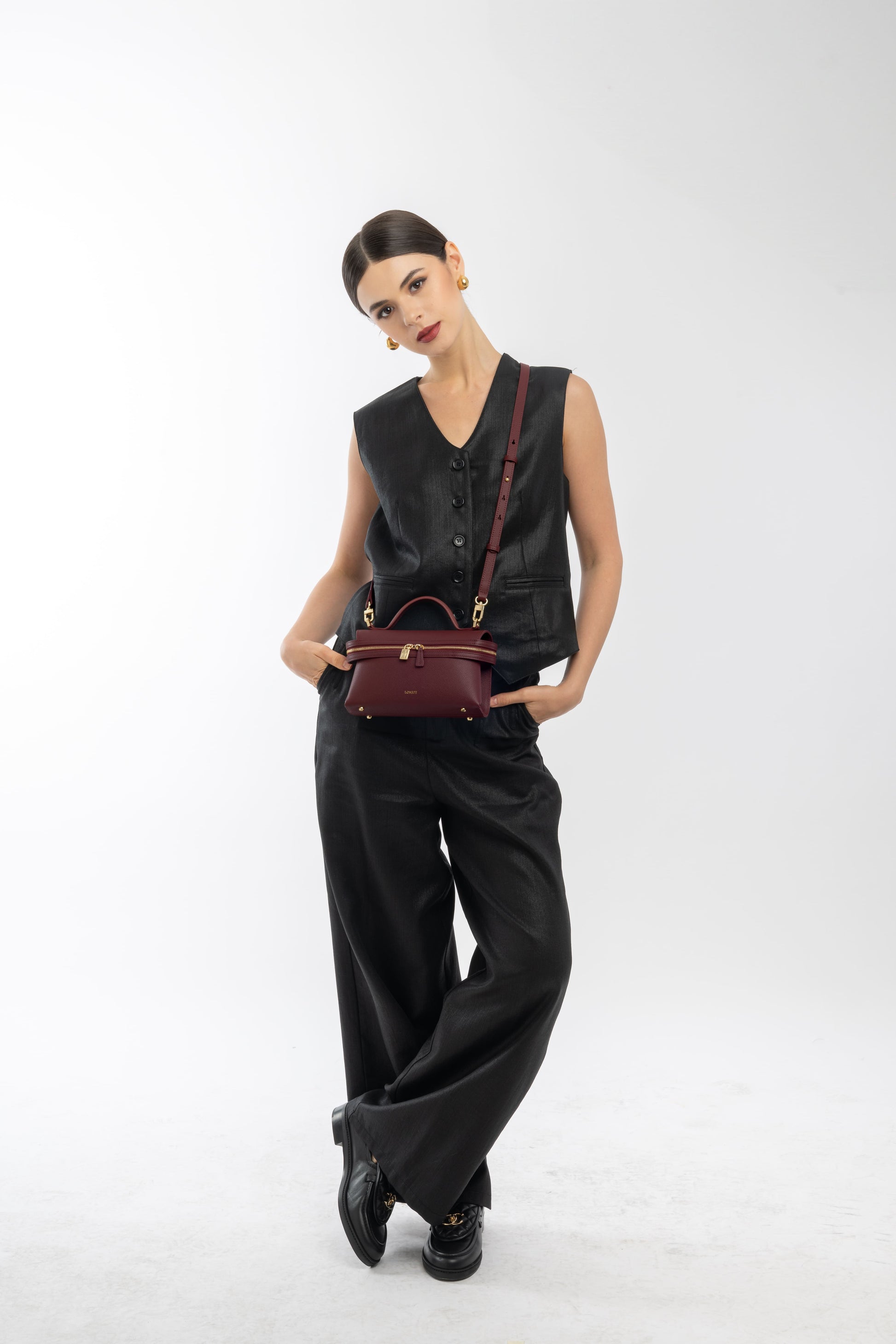 The Mini Leri bag is for the woman who loves making a statement. Made from 100% epsom calfskin leather, it combines bold, premium quality with a versatile design that effortlessly complements any style—whether you lean towards feminine elegance or more daring fashion choices. Its unique look and daring details make it the perfect accessory for any time of day, pairing seamlessly with a wide range of outfits.